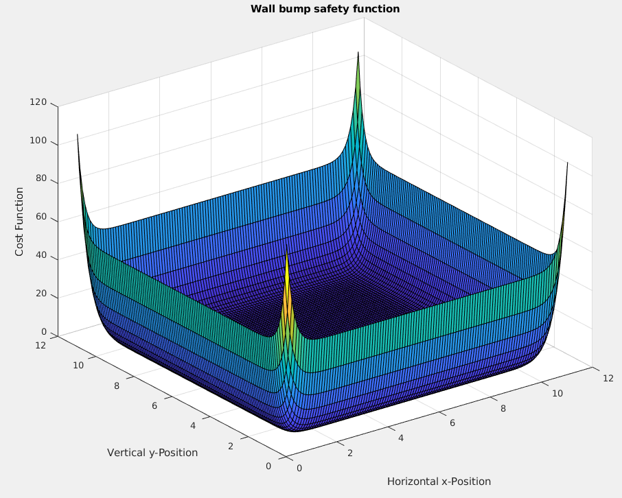 The wall avoidance is implemented through a penalty-based approach. The closer the turtle approaches the boundary, the higher the cost applied to the control signal.